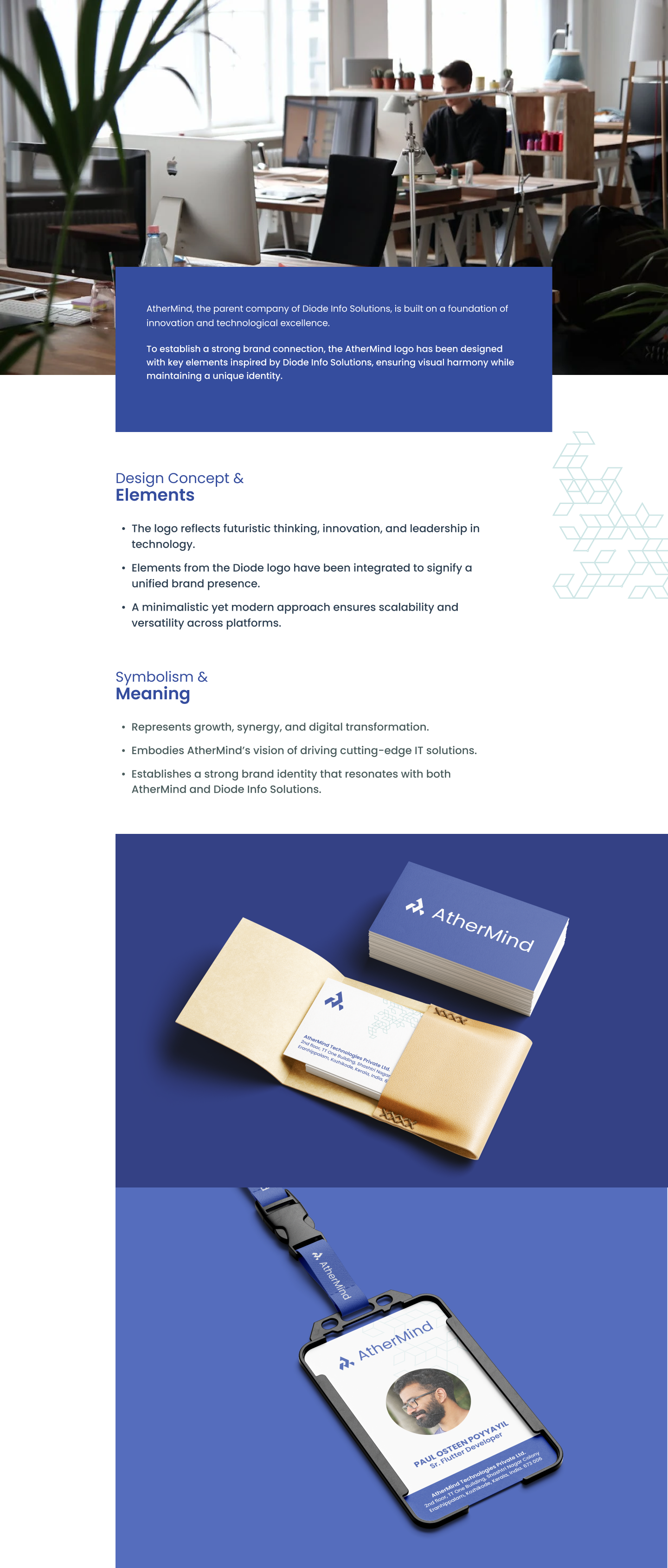 To establish a strong brand connection, the AtherMind logo has been designed with key elements inspired by Diode Info Solutions, ensuring visual harmony while maintaining a unique identity.