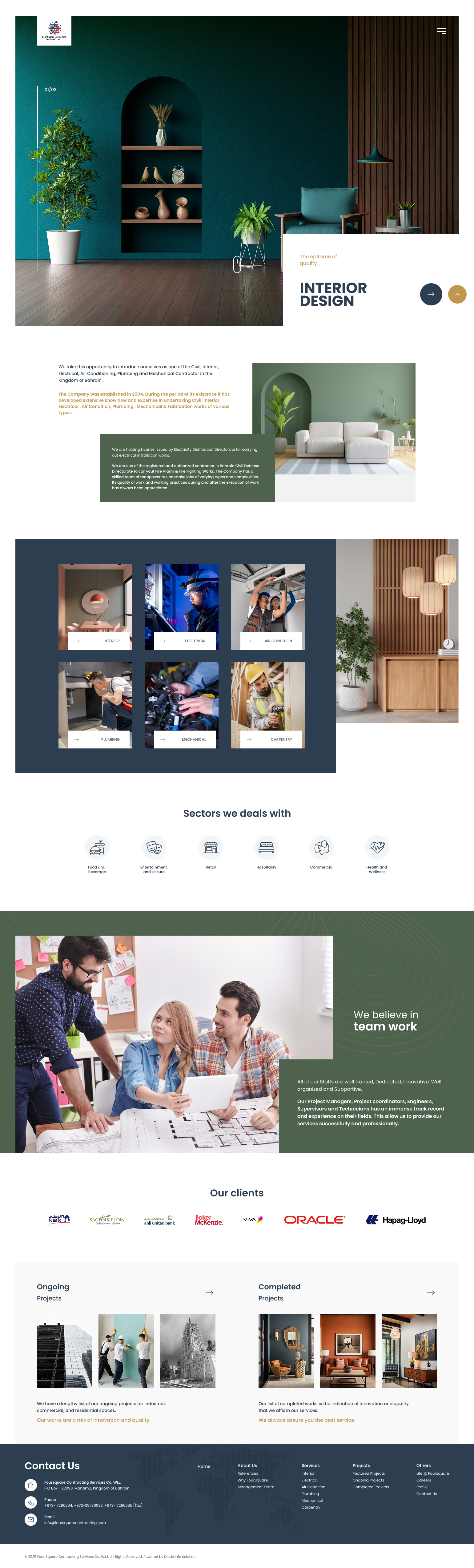 Four Square Contracting Services W.L.L is a trusted name in Bahrain, specializing in civil, interior, electrical, air conditioning, plumbing, mechanical, and fabrication works.